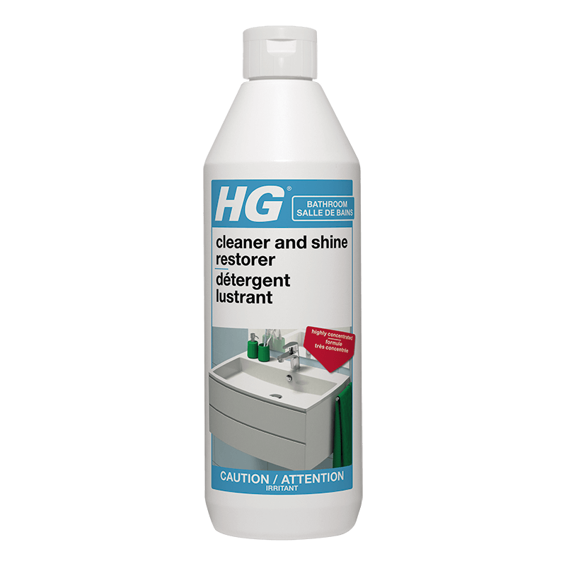 HG bathroom cleaner and shine restorer restores the shine to washbasins, bathtubs, toilet pans, taps and tiles. The sanitary cleaner has a fresh fragrance and removes bath oil marks, soap residues, skin grease and light limescale. Our sanitary cleaner does not streak and regular use prevents limescale.