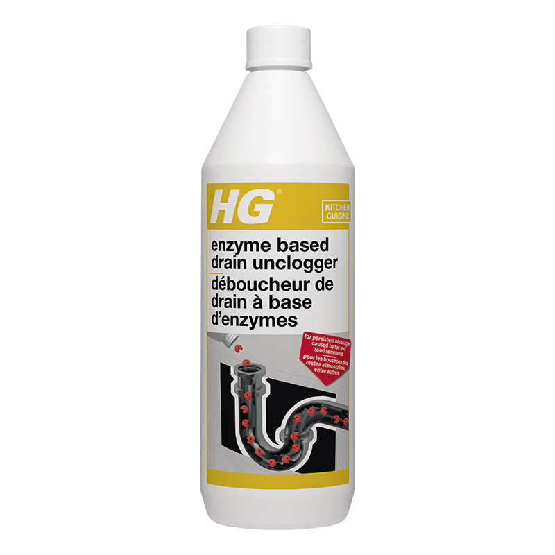 This product is also a sink drain cleaner. Twice a month, pour a dash of HG enzyme based drain unclogger down the drain, preferably in the evening, and leave it overnight in order to prevent blockages or bad odours. We recommend using HG drain odour remover to prevent or remove unpleasant odours in the drain or the sink.